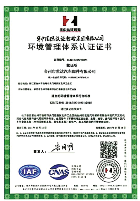 OEM经验 证书 IATF16949、ISO14001
